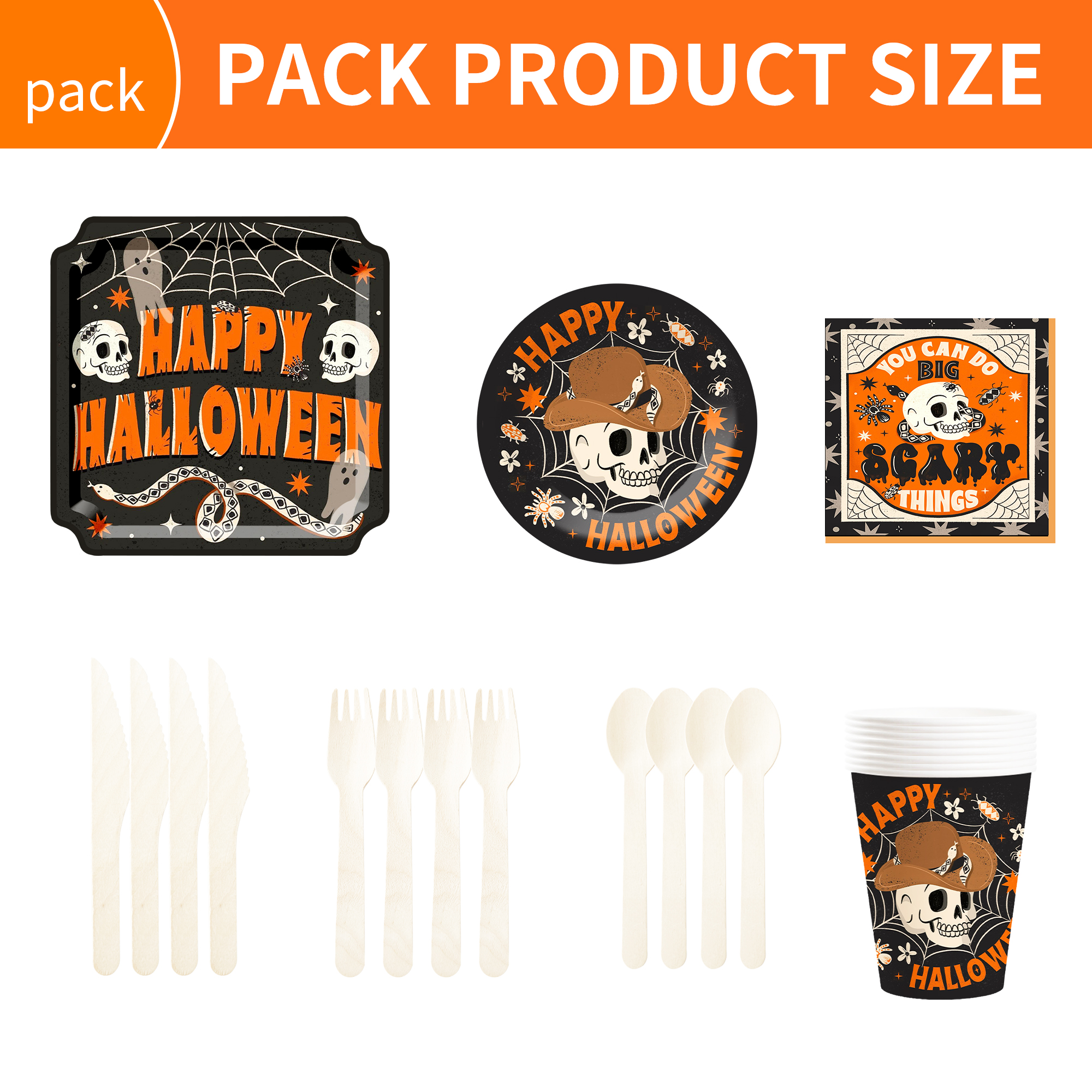 Halloween Skull and Spider Web Series Paper Plates