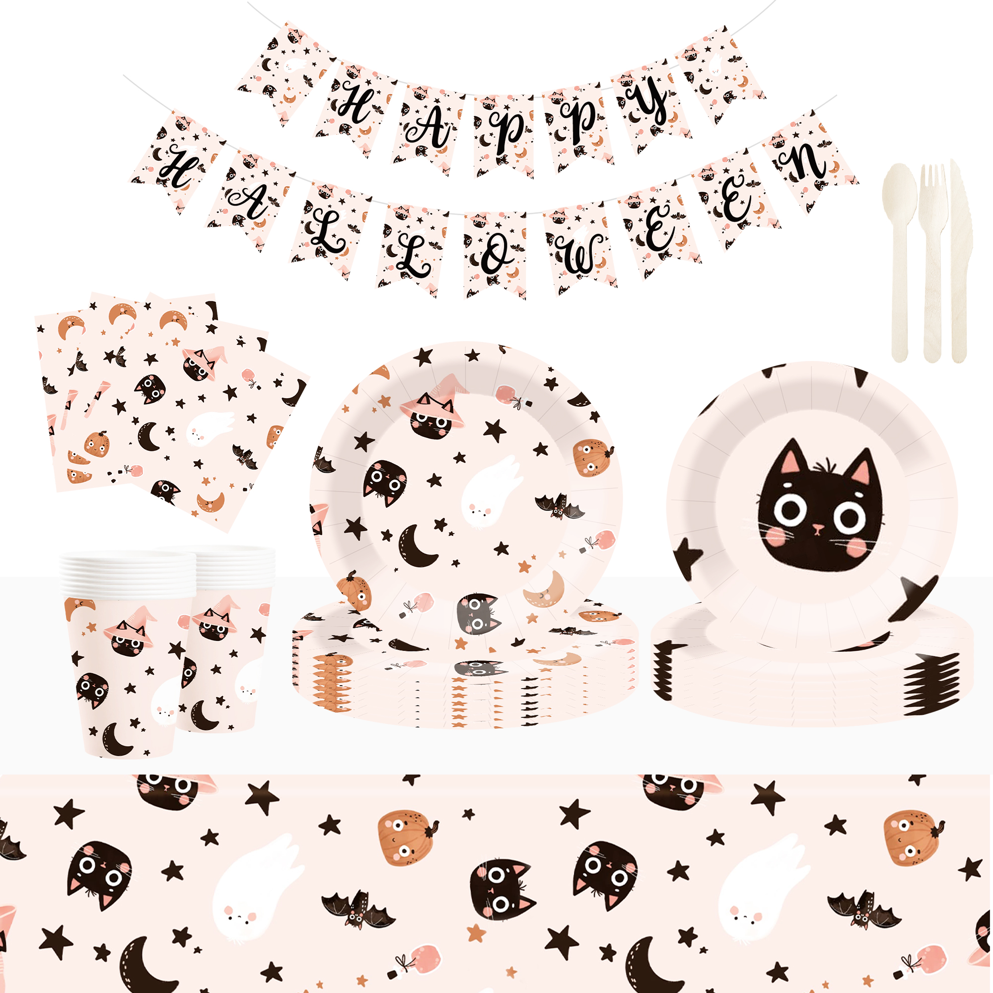 Cute Black Cat Dessert Plate for Halloween