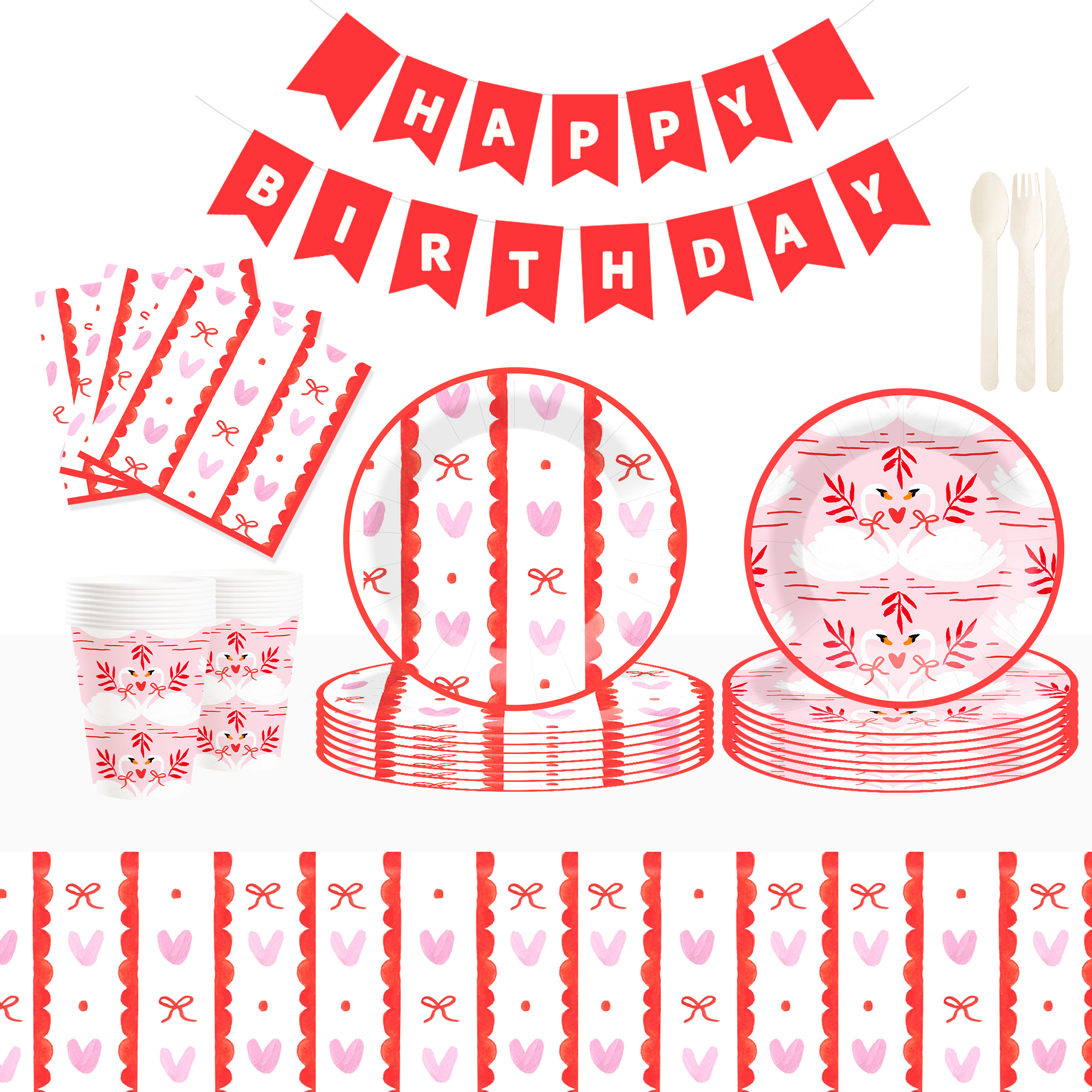 Valentine Theme Pink&White Swan Pattern 9oz Cup