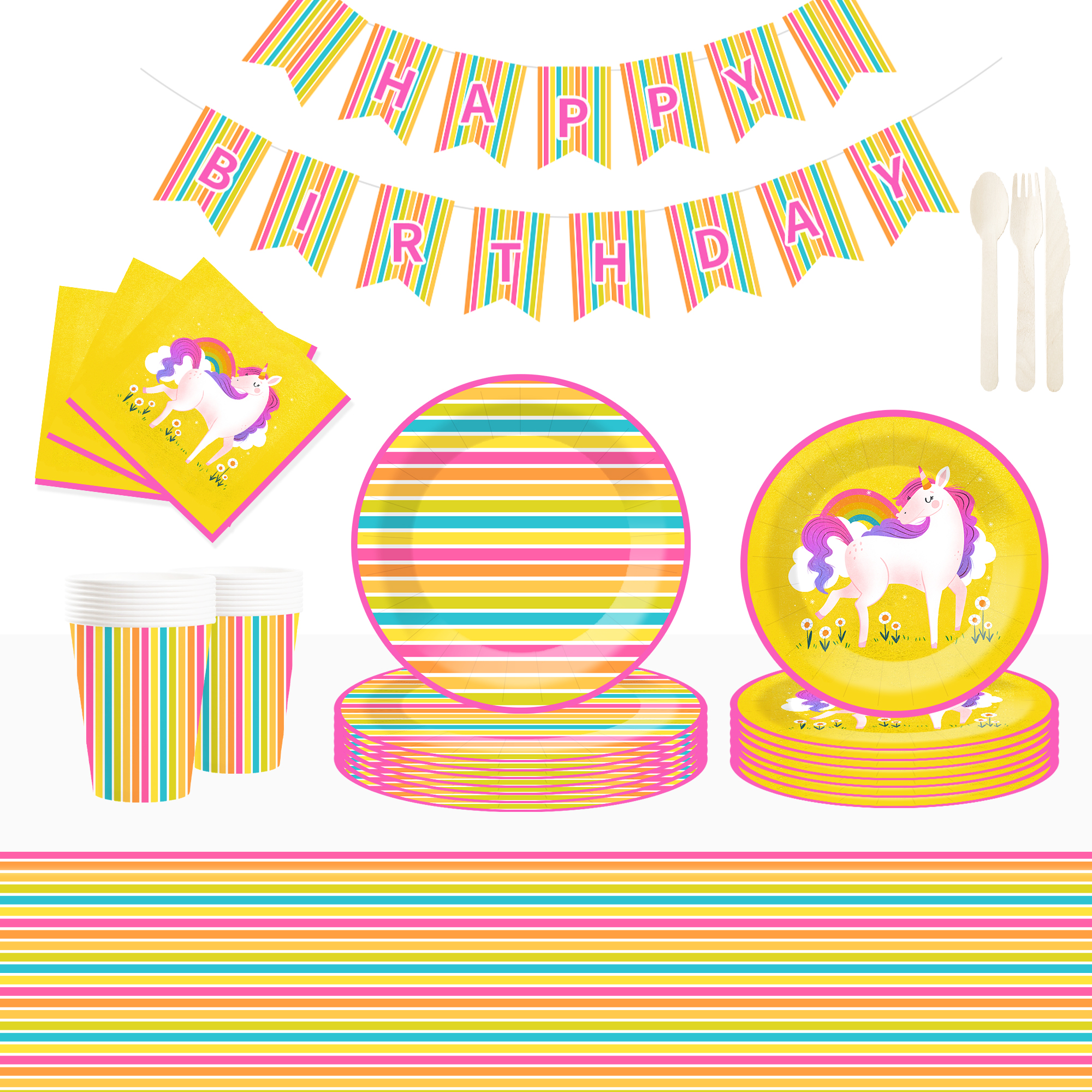 Yellow Stripe Happy Birthday Paper Banner Unicorn Theme