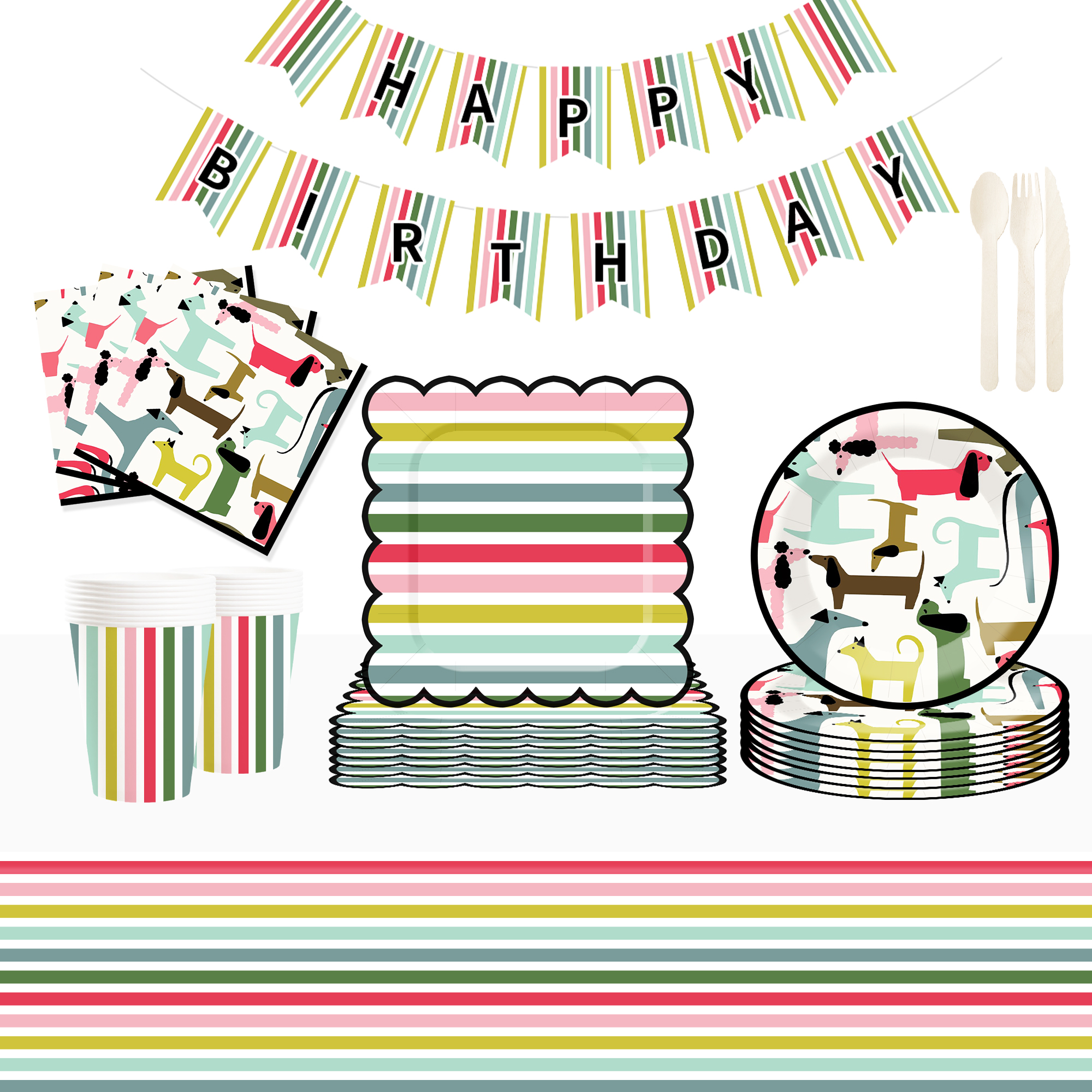 Animal Theme Stripe Happy Birthday Paper Banner for Kid Party