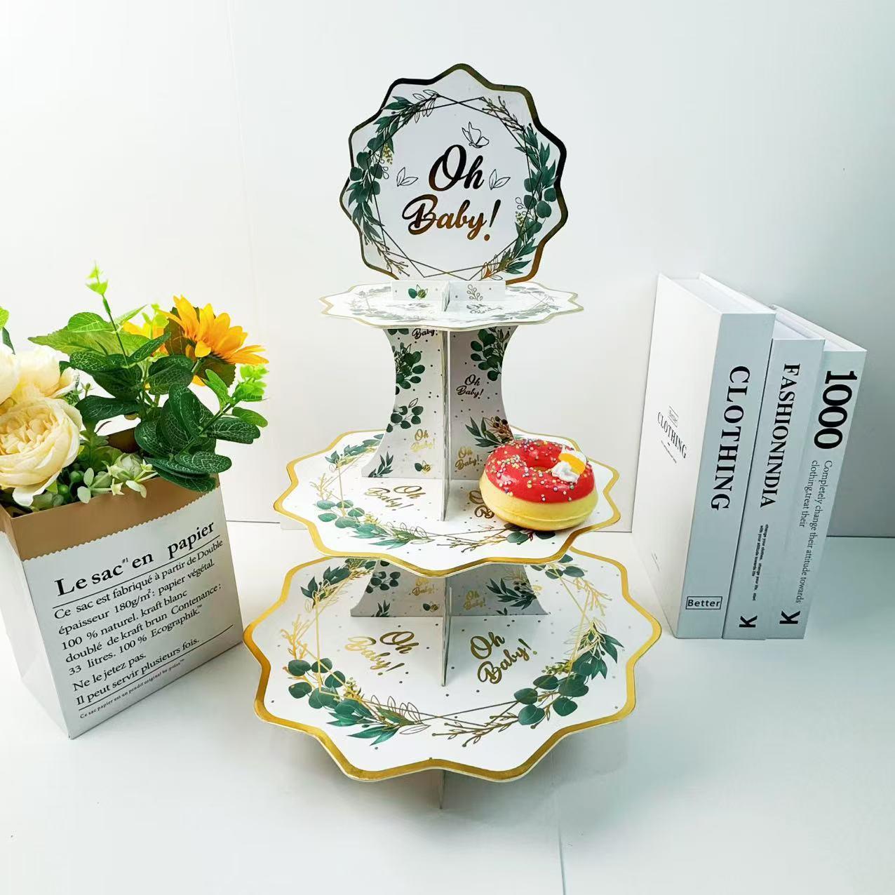 Baby Shower Theme Basil leaves Three-layer Cake Stand